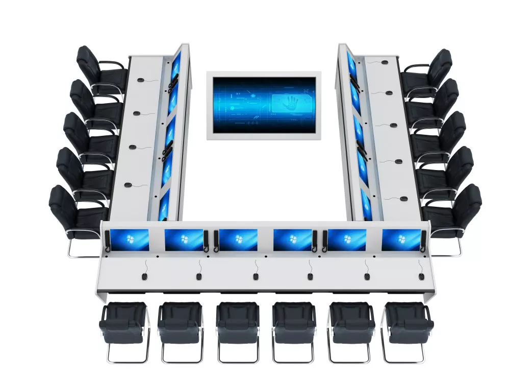 Se puede utilizar en escenarios de tamaño pequeño a mediano, como salas de seguridad comunitarias, salas de control empresarial y salas de servicio de parques industriales. Es fácil de operar, ayuda a organizar los cables, mantiene ordenada el área de monitoreo y satisface las necesidades del monitoreo diario de alta frecuencia.