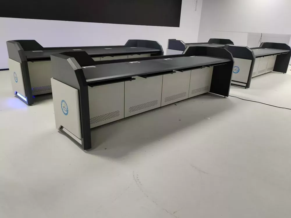 El producto presenta un diseño modular, con una sola unidad como unidad básica que puede extenderse de manera flexible en longitud para adaptarse a diferentes diseños espaciales. Su forma limpia y simple de línea recta maximiza la utilización del espacio de la sala de monitoreo al tiempo que facilita el diseño organizado de estaciones de trabajo múltiples y la colaboración del personal. Fabricada con placa de acero laminado en frío de alta resistencia mediante un procesamiento de chapa de precisión, la superficie está tratada con recubrimiento en polvo electrostático, lo que la hace resistente a la oxidación, al desgaste y fácil de limpiar y mantener.