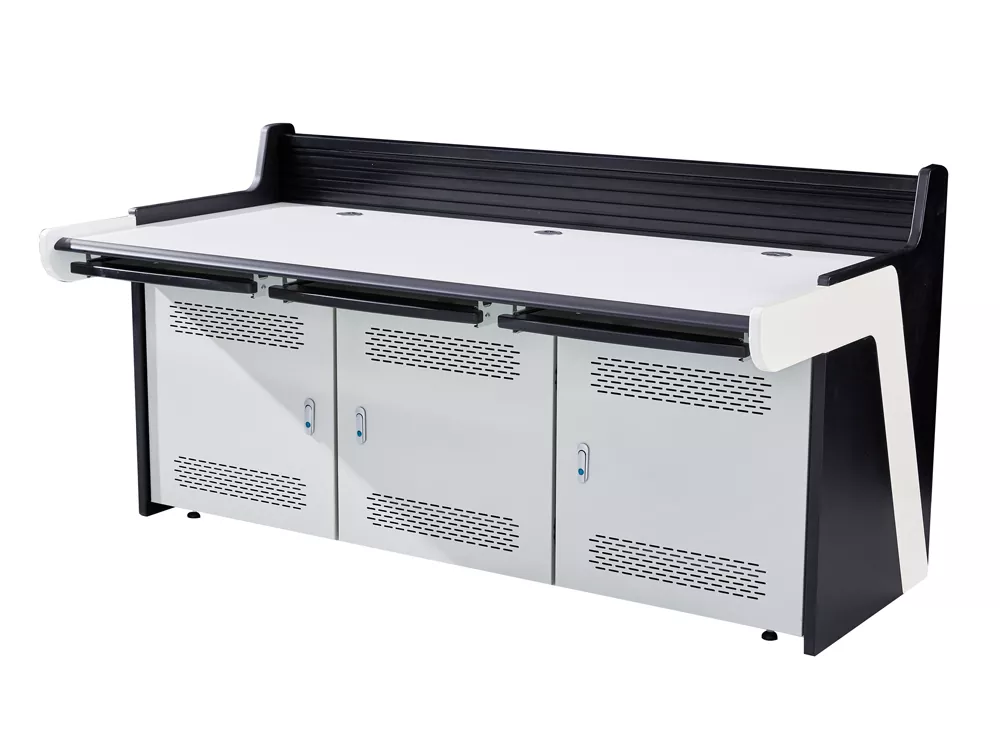 Los productos presentan un diseño extremadamente simple y compacto, que elimina estructuras redundantes para maximizar la utilización de la consola en un espacio limitado. Se pueden colocar contra una pared, en el centro o en otros lugares, sin ocupar espacio de actividad adicional, lo que facilita el movimiento flexible y la colaboración entre múltiples estaciones para los operadores. El cuerpo está construido con placa de acero laminada en frío de alta especificación, sometida a múltiples procesos de conformado y tratamientos superficiales, lo que da como resultado una estructura robusta y resistente a la deformación que puede soportar varios tipos de desgaste debido al uso diario de alta frecuencia en salas de monitoreo.